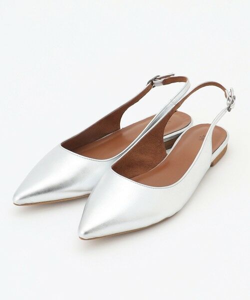 ■デザイン/素材ポインテッドトゥのバックストラップサンダルです。ストラップ部分は着脱しやすく、歩行時にもずれにくいゴム付きとなっております。ヒールは1.0cmと低いので、足に負担がかかりにくく、歩きやすいデザインです。アッパーの素材はブラウンとネイビーにはカウレザー、シルバーにはシープレザーを使用しており、高級感を演出しています。足に当たるライニングには人工スエードを使用しており、肌触りの良さが特徴です。中底の芯には足当たりの良いスポンジ芯と、足に馴染みやすくフィット感が増す厚みのある低反発素材の2つの芯材を採用しております。本底は軽く柔らかい、発泡性の高い素材を使用し歩きをサポートしてくれます。