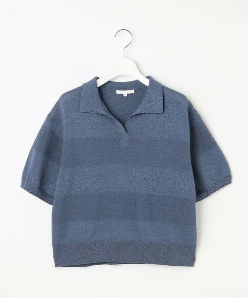 涼しげで軽量感のあるトレンドのスキッパーポロニット■デザイントレンドデザインのスキッパーポロタイプのニットです。コンパクトながらも袖ぐり周りは程よくボリュームを付けることで、女性らしい抜け感のあるシルエットに仕上げています。無地ベースでありながら、組織でブロッキングすることでボーダー風の表情を付けた、1枚でサマになるデザインです。■素材マニラ麻が主原料の和紙を細くより薄くカットし、細番の綿糸を包むように撚り合わせた糸にポリエステルをタスキ状に撚糸をした特殊な糸を使用しております。和紙はさらりとした肌触りで清涼感があり、軽量なので着心地の良い素材となっております。■同素材アイテムカーディガン(KRWMCM0553)