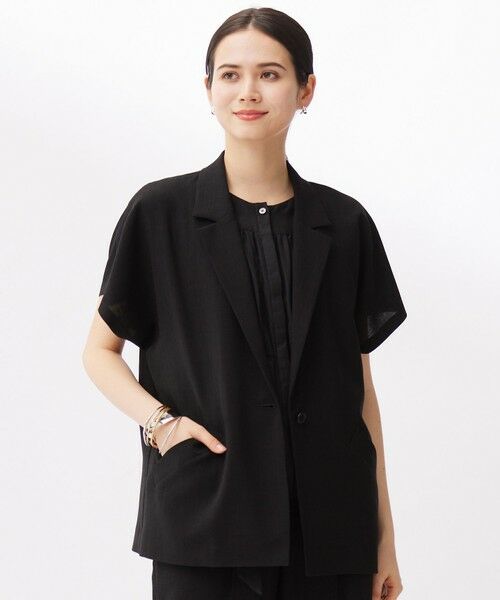 シャツ感覚でラフに羽織れる涼やかなジャケット■デザインシャツのようにラフに羽織って頂けるジャケットです。ゆったりとした身頃のサイズ感と裁ち出しの袖が涼しげで、襟やラペルの作りも柔らかく、梅雨時期や暑い夏の日差し避け、冷房対策にも活躍する1枚です。同素材のテーパードパンツ(PRWMGA0005)と合わせてセットアップとして着て頂くのもおすすめです。※モデル画像はサンプルを使用しております。実際にお届けする商品は、サンプルよりポケット角度を立てて、口布幅が少し細くなります。正しい仕様は物画像(モデル画像ではない画像)をご参照ください。■素材ナチュラルな濃淡色調の清涼感のある麻調素材です。トリアセテートを使用した適度なシャリ感のある素材で、タンブラー加工を施すことでナチュラルな風合いに仕上げています。シワになりにくく、吸放湿性に優れ、UVカット、接触冷感と暑くなる時期に嬉しい機能性のある素材です。■同素材アイテムブラウス(BLWMGA0005)テーパードパンツ(PRWMGA0005)
