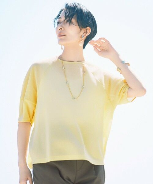 ふんわりとしたランタンスリーブとシアー感が女性らしいTシャツ■デザイントレンド素材でもあるシアーをジャージでこなしたデザインTシャツです。ジャージながら程よいハリとしなやかさのある素材を活かしたランタンスリーブが、フェミニンな印象になっております。程よい丈感なので、インでもアウトでも着て頂けます。■素材綿とポリエステル糸を特殊な撚糸改造機でダブルカバーしたオリジナルヤーンです。さらりとしたタッチで肌離れがよく、適度なストレッチ感のあるストレスフリーの素材です。※画像はサンプルを使用している為、実際にお届けする商品と仕様、加工、サイズが若干異なる場合がございます。予めご了承ください。※撮影環境の都合上、実際の商品と色味が異なって見える場合がございます。洗濯表示【本体のみ】40℃まで弱洗濯可 塩素系漂白不可 タンブル乾燥不可 日陰つり干し乾燥 アイロンは160℃まで ドライクリーニング可 弱いウェットクリーニング可