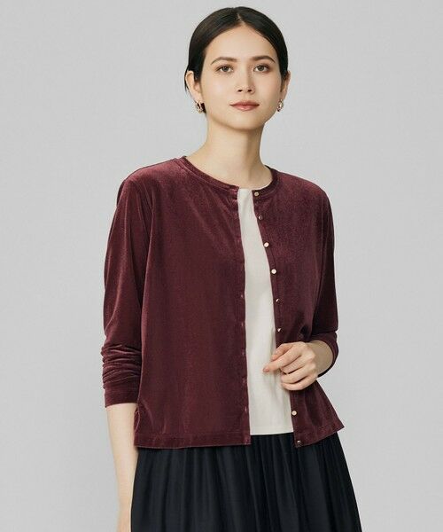 程よい透け感がポイントのベロア素材カーディガン■デザインややコンパクトなシルエットのベロア素材のカーディガンです。クラシカルなカーディガンは素材に表情があり、シンプルながらスタイリングのアクセントになるアイテムです。■素材透け感のあるベロア素材です。絶妙な透け感と光沢感でニュアンシーな雰囲気を楽しめます。レイヤードでのアクセント使いから1枚着トップスなど、様々なアイテムで活躍するトレンド素材です。■同素材アイテムカットソー(KKWMGW0333)※画像はサンプルを使用している為、実際にお届けする商品と仕様、加工、サイズが若干異なる場合がございます。予めご了承ください。※撮影環境の都合上、実際の商品と色味が異なって見える場合がございます。洗濯表示【本体のみ】40℃まで弱洗濯可 塩素系漂白不可 タンブル乾燥不可 日陰つり干し乾燥 アイロンは120℃まで ドライクリーニング不可 弱いウェットクリーニング可