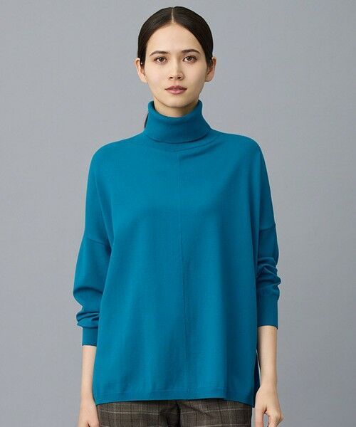 暖かさとほどよいオーバーサイズがポイントのハイネックニット■デザイン定番のオーバーサイズのニットです。冬仕様の厚手素材とハイネックデザインで、寒さに対応できる暖かさをキープしたデザインです。ボリュームが出すぎず、アウターとの相性も良く、冬の重ね着スタイルに活躍します。■素材しなやかなビスコースにストレッチが入った適度な落ち感のあるエレガントな素材です。気温が下がるこの時期に適したやや太番手の糸を使用してシーズンレス素材ながら低気温の時期に適した厚みのニットに仕上げています。着心地、肌触りが良く上品な光沢感が特徴です。