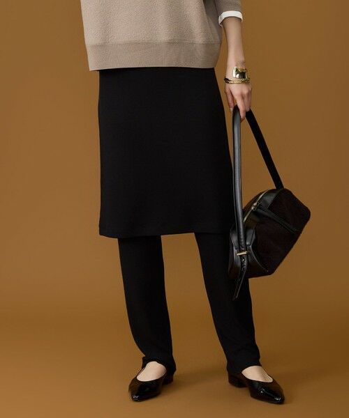 着心地もスタイルも叶える、大人のレギスカ■デザインスタイリングに鮮度を持たせてくれるレギスカは、トレンド傾向にあるアイテムです。くしゅくしゅとレッグウォーマーのようにして履けるように、レギンスはあえて長めにお作りしています。サイズ調整が効くようにウエストはゴム仕様に、スカートとウエストはドッキングになっています。すべてジャージ素材で仕立てているため、イージーケアで快適な着心地です。ミドルゲージのニットと合わせるスタイリングもおすすめで、肉厚なボトムとはひと味違う大人の抜け感を演出してくれます。■素材ウールとレーヨンの二重構造糸をしようしたベアテレコ素材になります。糸構造芯部の18.5μ防縮ウールをビスコースレーヨンで包み込んだ二十構造のハイブリットヤーンを使用することで、ウール特有の暖かみを活かしながら、ビスコースレーヨンの柔らかさを十分に感じられる素材になります。優しい風合いと程よくストレッチがある快適な着心地が特徴です。