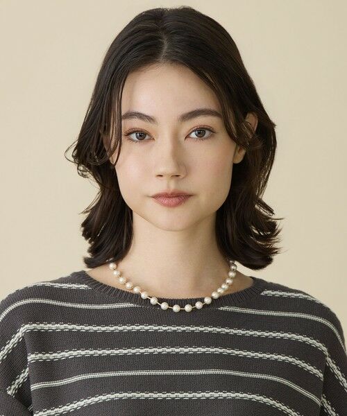 ■デザインパールとメタルパーツを交互にMIXさせたネックレスです。表面を何度も塗り重ねた貝パールを使用しており光沢があります。オケージョンシーンにもご使用頂けるアイテムです。※画像はサンプルを使用している為、実際にお届けする商品と仕様、加工、サイズが若干異なる場合がございます。予めご了承ください。※撮影環境の都合上、実際の商品と色味が異なって見える場合がございます。
