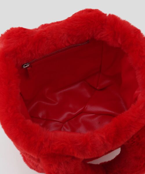 ファー素材のハンドバッグです。ふんわりと柔らかく、触り心地が抜群です。内側にはファスナー付きポケットがあり、実用性も兼ね備えています。鮮やかなレッドカラーが、冬のスタイリングに華を添えます。※商品画像の色味は、屋外や屋内の光の照射や角度により実物と色味が異なる場合がございます。また表示のサイズ感と実物は若干異なる場合もございますので、予めご了承ください。