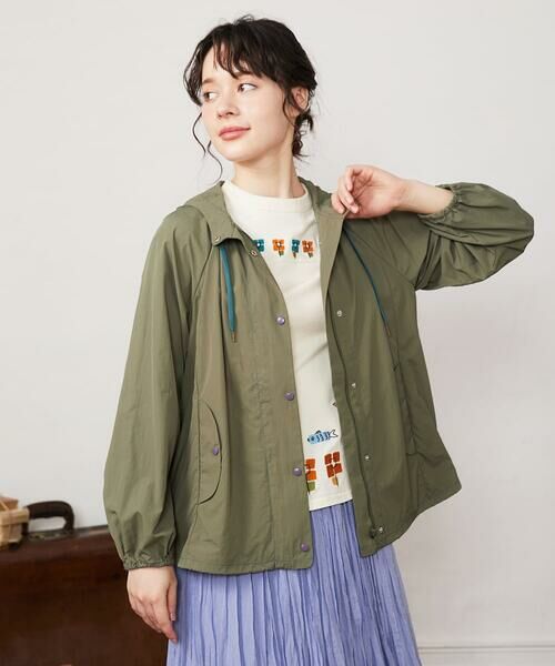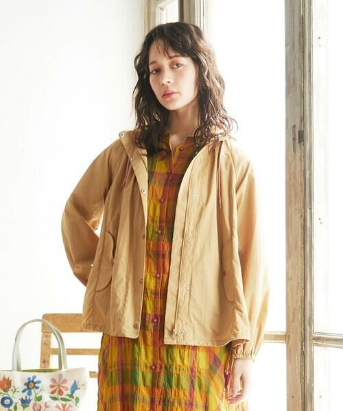 カジュアルなマウンテンパーカー。ラグランスリーブでゆとりのあるシルエットが快適な着心地を実現します。フード部分には紐、裾にはゴム紐を入れており、シーンや気分に合わせてシルエットの変化を楽しめます。丸みのあるポケットが大人可愛い印象に。シンプルながらもフード紐やスナップ釦などを配色にしホコモモラならではの雰囲気をプラスしました。