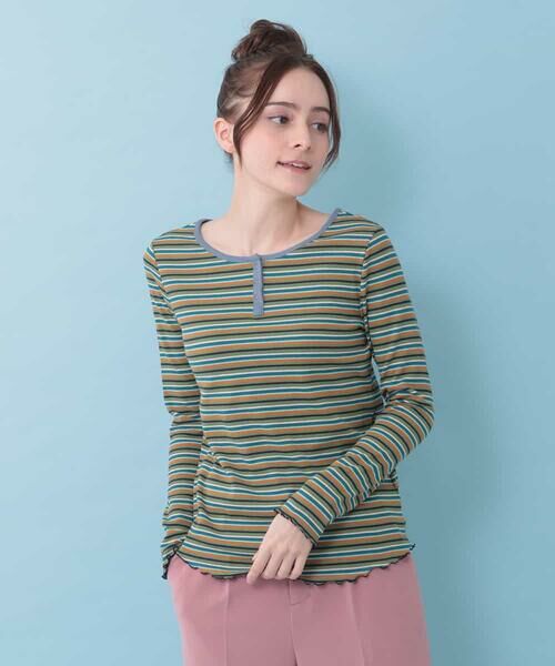 抜け感のあるヘンリーネックで仕上げているので、首回りがすっきりと表現され細見え効果が期待できます。
