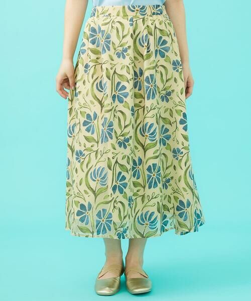 華やかなお花柄のスカート。幅広い方に似合いやすいフレアなAラインシルエットです。前後にあしらったウエストタックですっきりとした印象に。サイドファスナーで着脱でき、バックゴムでリラクシーな着用感も魅力ポイントです。長めのスカート丈はよりエレガントな雰囲気でお召しいただけます。
