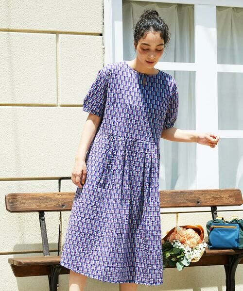 ホコモモラならではの鮮やかな配色ワンピースは一枚で映えること間違いなし。袖が長めなので安心してお召しいただけるのも嬉しいポイント。季節の変わり目にはカーディガンやジャケットを重ねてお召しください。