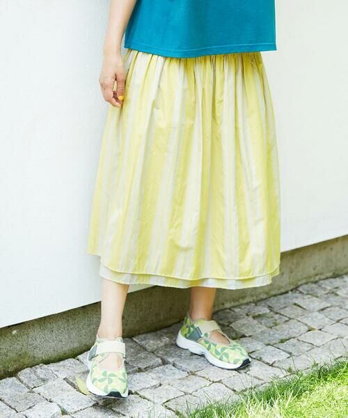 二つのデザインが楽しめるスカート。ゴムシャーリングでウエスト部分はすっきり、腰から下はゆるやかなAラインシルエットです。合わせるトップスや、気分で変えられるリバーシブルタイプ仕様。表面は大きなチェック柄、裏面は太さの異なるストライプを組み合わせたランダムストライプ柄のデザインです。ウエストの伸縮性が高く、リラクシーな着用感も魅力に。