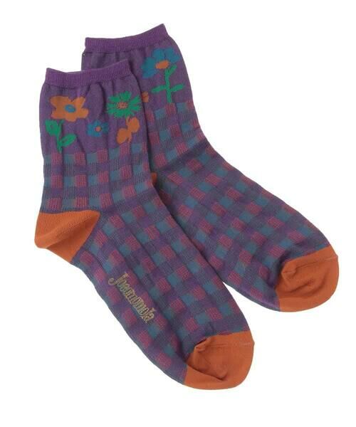 足元におしゃれなアクセントを加えるカジュアルソックス。ナチュラルなチェック柄をベースにお花のモチーフをトップに飾った遊び心のあるデザインが魅力的。伸縮性に優れたコットン混素材の柔らかな履き心地も嬉しいポイント。落ち着きのあるカラーリングでコーディネートに取り入れやすく、あえてサンダルやスニーカーからちらりと覗かせたスタイルもおすすめです。