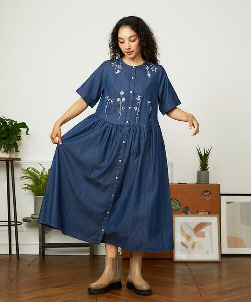 繊細な刺繍が特徴のシャツワンピース。裾にかけて広がっていくゆったりとしたシルエットです。ウエスト部分に切り替えとたっぷりとギャザーを入れ、女性らしい印象を後押し。身頃に施したお花のコード刺繍はデニムの生地と相性が良く、目を惹くデザインです。二の腕カバーが叶うほどよい袖丈と袖口の赤いステッチがアクセントに。嬉しいポケット付きです。