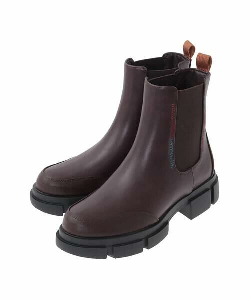 トレンドのボリュームソールが目を惹くサイドゴアブーツ。両サイドにゴムを配し脱ぎ履きしやすいだけでなく、足首周りのフィット感も高めて快適に履いていただけます。つま先部分と後ろ部分に施した切り替え、ゴムに沿ったジグザクのカラーステッチがホコモモラらしい遊び心あふれるアクセントに。シンプルなワンカラーでどんなスタイリングにもマッチします。各パーツの縫い代に止水テープを縫い込み、多少の雨なら防げる仕様です。※防水ではございません。