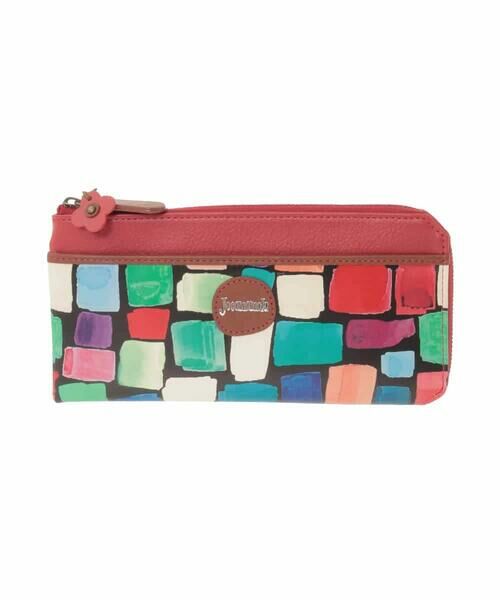 スリムですっきりとしたフォルムが特徴的な長財布。ぱっと目を惹く配色アートデザインがホコモモラらしいオリジナリティあるひと品です。コーナージップ式の安心仕様でインナーの仕切りにもこだわった使い勝手の良さも魅力。マットな牛革を組み合わせた上品な風合いもポイントです。ジップ引手のフラワーチャームがさり気ないアクセントに。