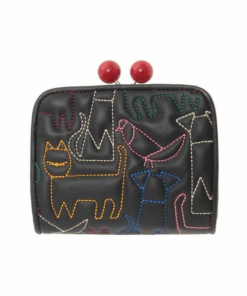 Jocomomola / ホコモモラ その他小物 | アニマルステッチがま口二つ折り財布(ブラック)