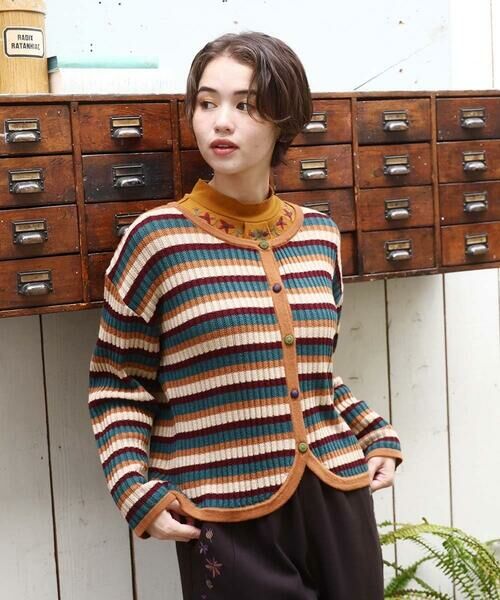 秋冬のマストアイテムのリブカーディガン。ボレロライクなシルエットで女性らしい印象に。ドロップショルダーで肩回りの快適さを叶えます。ホコモモラならではの配色ボタンにも注目。