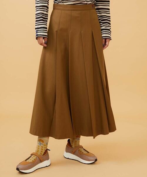 着合わせを選ばない万能スカート。クラシカルな雰囲気とカジュアルさのバランスが絶妙で、大人のカジュアルスタイルには欠かせないアイテムです。トップスには冬らしいニットやホコモモラの柄物トップスもオススメ。