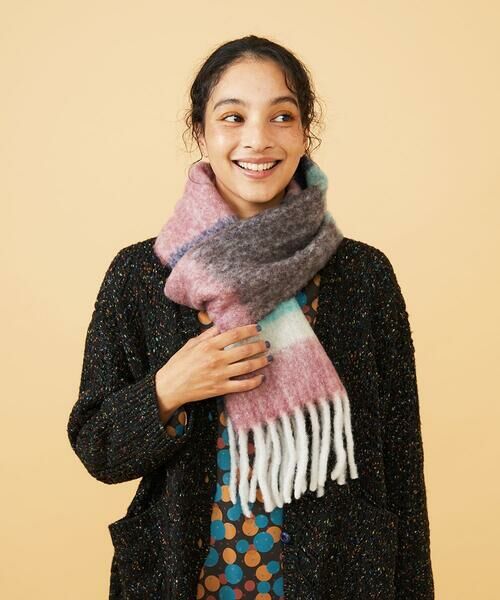 アルパカやモヘヤ混でウォーム感たっぷりに仕上げた上質感あるデザインマフラー。ニュアンスある配色ボーダー柄で巻アレンジしやすい丁度よい幅感も魅力的なひと品です。太めのフリンジをプラスした存在感のあるディテールもポイント。暗くなりがちな秋冬スタイルに映えるアクセントにぴったりのアイテムです。