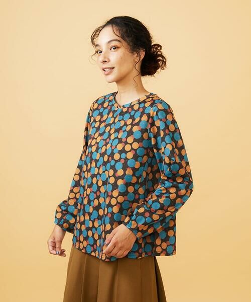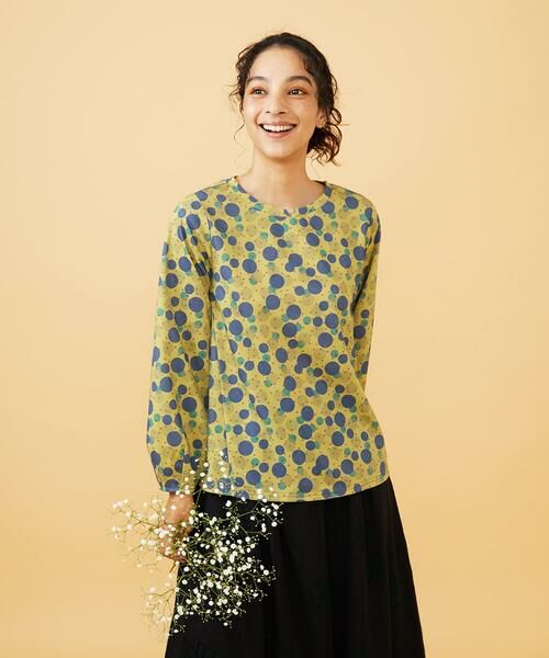 カラフルなドットが目を惹くホコモモラらしいプリントカットソー。ゆったりとしたリラクシーなシルエットで快適な着心地を実現します。サイドに入った切り替えにより柄に動きが出るデザインになっています。襟のデザインや、ふわりとしたパススリーブがデザインポイントです。