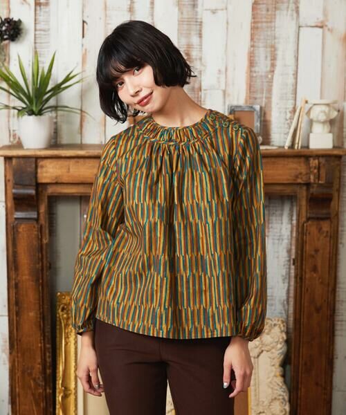 色鮮やかなプリント柄が主役のブラウス。ほどよい丈感でどんなボトムスともバランス良くお召しいただけます。パンツとの組み合わせは大人のカジュアルスタイルが完成します。