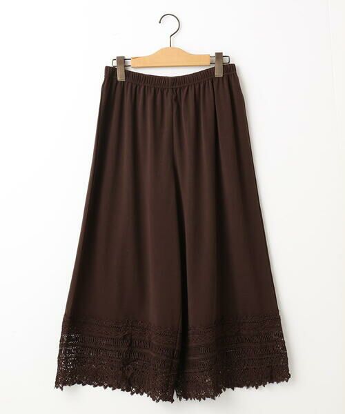 大人気のペチコートパンツに秋冬仕様になって登場しました。裾にかけて広がるシルエットとレースが女性らしい印象を後押し。レース部分はシックな幾何調模様の華やかなひと品です。レイヤードが楽しめるペチコートパンツは一枚は持っておきたい便利なアイテムです。