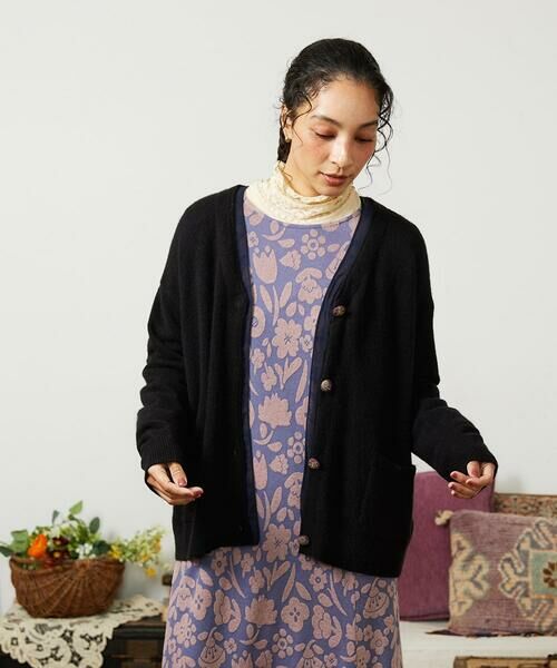 着回し力抜群なカーディガン。ハイネックのインナーや柄のカットソーとも相性良く着ていただけます。 パンツやスカートはもちろん、ワンピースの上に羽織るのもオススメです。