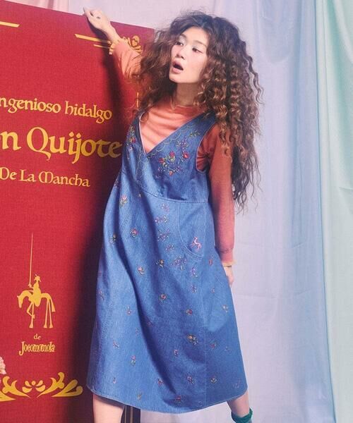 春らしい明るいカラーが魅力のジャンパースカート。テーマの「物語の始まり」からインスピレーションを受けています。ゆったりとした身頃で快適な着心地を実現し、ウエスト切り替えでスカート部分のふんわりとしたシルエットが女性らしい雰囲気に。Vネックでお顔周りのすっきり見えを叶えます。豪華なお花刺繍がホコモモラならではで、片方のポケットにはワンポイントで猟犬の刺繍も施した遊び心溢れるデザインに。ホコモモラのこだわりが詰まったオススメの一枚です。