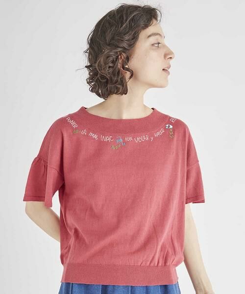 今シーズンのテーマである【冬の夢】から“なんて眠いんだろう”という意味が刺繍で施されたニットトップスです。夢の中で広がる想像力。ホコモモラらしいキャチーなデザインがとっても魅力。コットン100%で作られた着心地の良い風合いやコーディネートしやすいコンパクトなサイズ感がヘビーユースしたくなる一枚です。袖にはギャザーを寄せ、フェミニンムードをプラス。おしゃれで可愛らしいさが詰まったニットです。同ラインで仕立てた【GJSHD01170】とのアンサンブルもおすすめです。