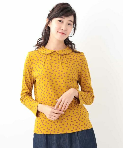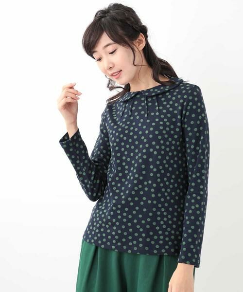 コットンとウールをミックスした、温かみのあるジャージー素材で仕立てたカットソーです。タックを入れたネックに、ラウンドカラーがブラウスのようなデザインの一着です。ランダムにあしらったドット柄はスタイリングをぐっと華やかにグレードアップさせてくれます。インナー使いすればコーディネイトのアクセントにもなってくれる一枚です。同じテキスタイルで仕立てた【GJKAG39118】もオススメです。model:H170 B80 W59 H85 着用サイズ:M
