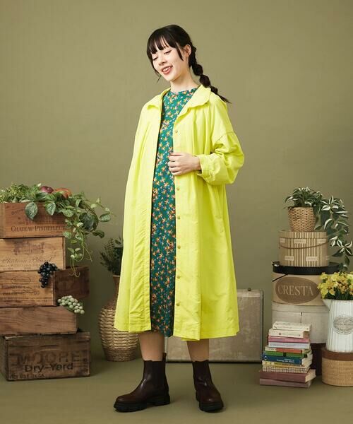 ホコモモラならではのカラーが印象的なロングコート。前後にタックが入ったゆったりとしたAラインシルエットで快適な着心地を実現。ラグランスリーブで肌寒い日には重ね着がしやすくロングシーズン活躍します。襟はスタンドカラーとしても、ボタンを開けて折り返しステンカラーにしたりと雰囲気を変えて楽しめるもの嬉しいポイント。ホコモモラらしいボタンが大人可愛く、袖やポケット口などに施されたステッチのカラーにも注目です。デイリー使いしやすく気軽にお召しいただけけるスプリングコートは今季押さえておきたいマストハブアイテムです。
