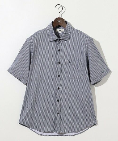このシャツは、小紋柄をプリントで表現しており、シンプルながらも上品さがあります。特にジャケットインしての着用時に、胸元を華やかに彩るデザインとなっています。リラックスフィットボディで、体型を気にせずストレスフリーに着こなせる一枚です。セミワイドフライポイントカラーの衿デザインが、品のある印象を与えています。