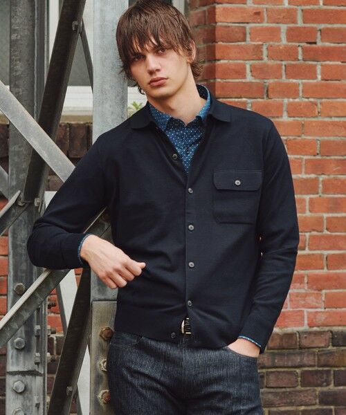 天竺編みでシンプルに仕上げたシャツカーディガンは、Tシャツやシャツに合わせたカジュアルな着こなしも、タイドアップした着こなしもお薦めの新作アイテムです。