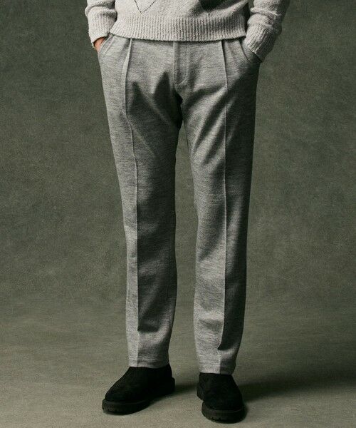 【キングサイズ・軽量/ストレッチ/尾州産ジャージー素材】ウールミルドジャージータック パンツ