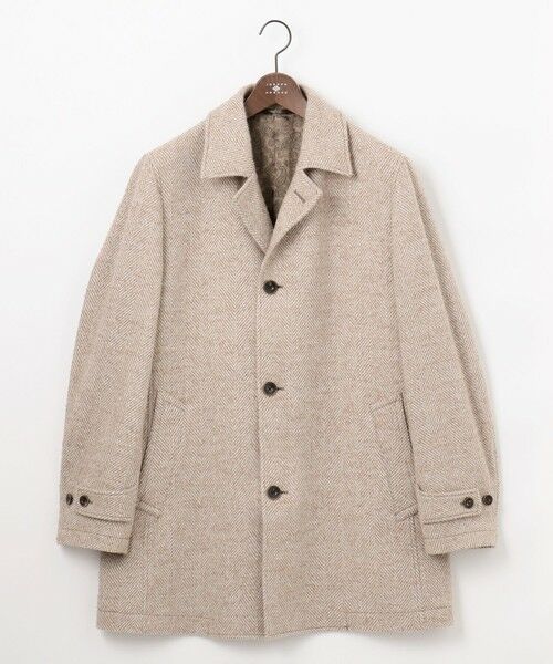 【キングサイズ・尾州産カシミヤブレンド素材/軽量】カシミヤブレンドアルパカヘリンボーン ステンカラーコート