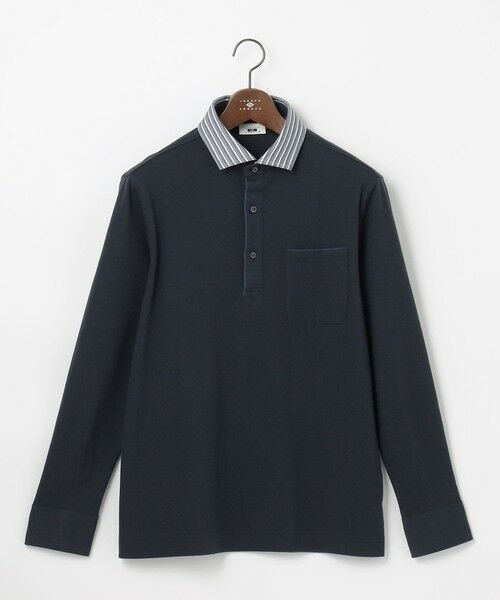Wジャカード編みで丁寧に仕立てられたポロシャツは、しっかりとした保形性があり、だれにくいのが特徴です。襟元には異なるシャツ生地をコンビ使いすることで、さりげないアクセントを加え、一枚で着ても様になる、上品なデザインに仕上げました。