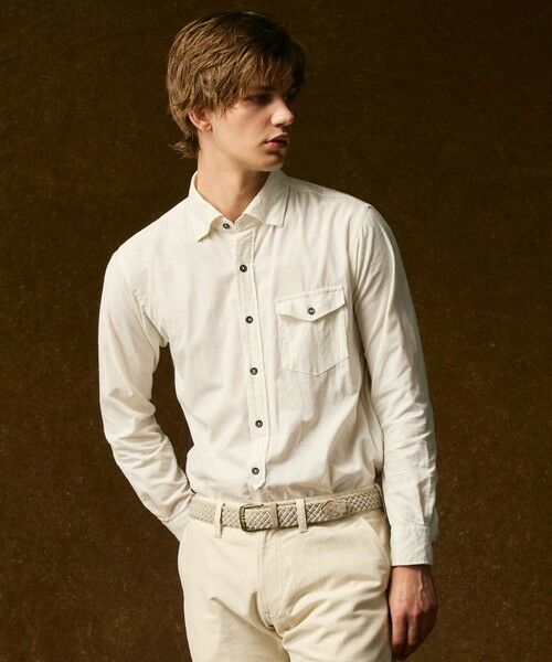 衿元には「フライポイントカラー」を採用しており、顔まわりをすっきりと見せながら、さりげない個性を演出します。 胸ポケットや袖口など、細部にわたってワークテイストのディテールが落とし込まれていますが、全体のバランスが良く、カジュアルながらも品良く着こなせるデザインです。 一枚で主役として着用するのはもちろん、ジャケットやニットのインナーとしても活躍し、秋冬のコーディネートに奥行きと深みを加えてくれる一枚です。