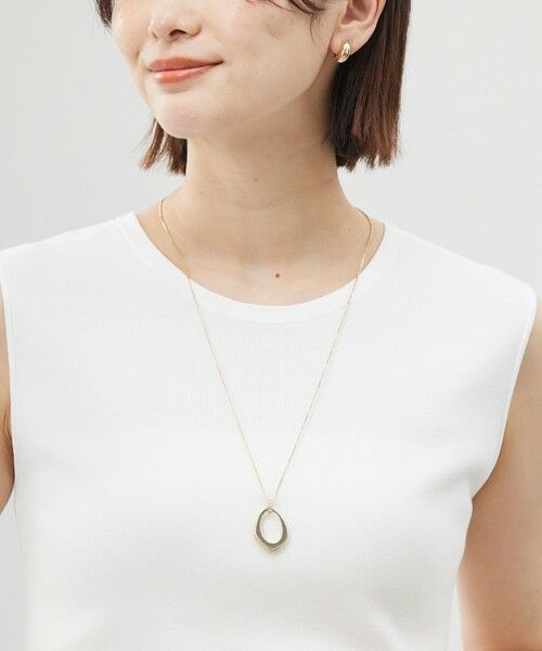 ■デザインドロップ型のメタルにエポをあしらったリバーシブルネックレス。表面はエポがさりげないアクセントになり、裏面はシンプルなメタルデザインで気分やスタイルに合わせて使い分けが可能です。夏の装いがシンプルになりがちな季節にも、程よい存在感をプラスしてくれるのが魅力。良質な日本製ため、ギフトにもおすすめです。また、チェーンはスライドボール式で長さ調節が可能で、その日のコーディネートに合わせて自由にアレンジをお楽しみいただけます。#003はグレージュエポとマットライトゴールドの組み合わせ、#075はネイビーエポとシルバーメタルの爽やかな印象です。