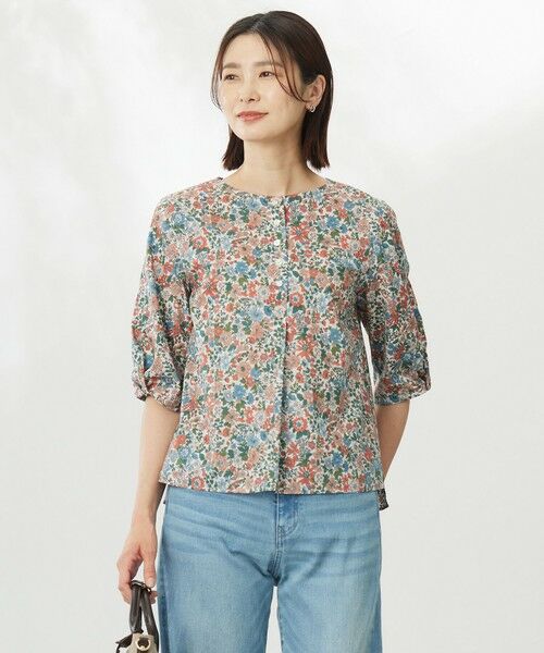 軽やかに着られてきちんと見え!袖にひと工夫を効かせた、リバティ柄のボートネックブラウス
