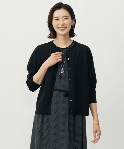 ■デザイン肌離れの良いサラッとした素材で、軽やかに羽織れるドルマンスリーブカーディガン。身頃はすっきりと見える程よいサイズ感に仕立て、ゆったりとしながらも上品な印象に仕上げました。さりげない存在感のあるJ.PRESSオリジナルの金釦が、シンプルな中に華やぎをプラス。身体のラインを拾いにくいシルエットで自然に体型カバーもしてくれます。季節の変わり目にはもちろん冷房対策としても重宝する1着です。