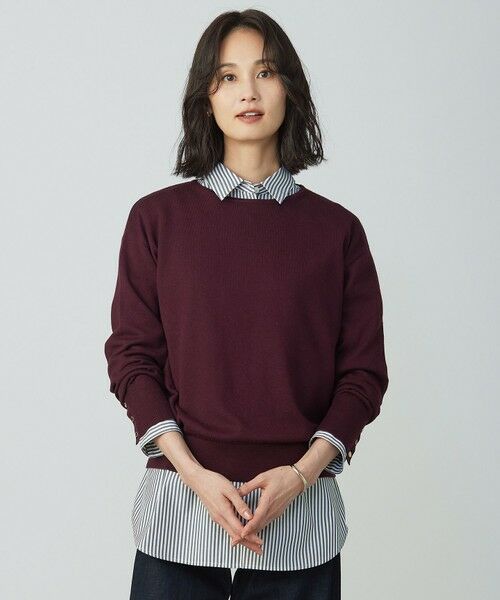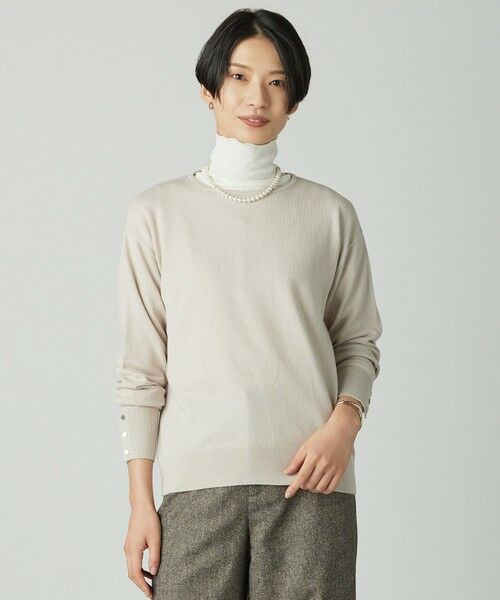 J.PRESSオリジナル金釦がポイントの、程よい膨らみと軽さが魅力のボートネックニット■デザインベーシックなシルエットに、さりげないディテールを効かせたボートネックニット。袖口に並んだJ.PRESSオリジナルの金釦がさりげない華やかさをプラスし、クラシックで上品な雰囲気を演出します。身頃の程よいサイズバランスにもこだわって仕上げました。ジャケットのインナーとしても、1枚でさらりと着てもきれいに映える、オンオフ活躍してくれるアイテムです。■素材19.5マイクロンのメリノウールの原毛に、コットンを巻いた糸を使用した素材。すっきりとした糸ながら、程よいふくらみと軽さを備え、柔らかでしなやかな光沢感が特徴です。※商品画像はサンプルを使用しているため、色味やサイズ等の仕様に変更がある場合がございますので、予めご了承ください。洗濯表示【本体のみ】40℃まで手洗い可 漂白不可 タンブル乾燥不可 日陰平干し乾燥 アイロンは160℃まで 弱いドライクリーニング可 弱いウェットクリーニング可