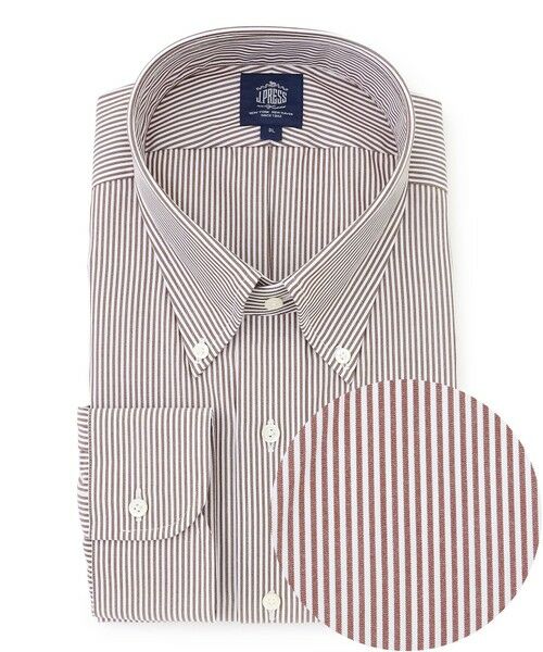 ■着心地へのこだわり~縫製ポイント~POINT1.肌が覚えるやわらかさ。襟元に、上質が宿る。一般的に形態安定を謳っているシャツは衿やカフスに接着芯を使用し皺になりづらいようケアしています。しかしその反面襟やカフスは固くなり着心地が悪くなるばかりか表地の自然な風合いも接着することで失ってしまうので見た目もチープになります。J.PRESSのプレミアムプリーツは衿、カフスに接着芯は用いていないので直接肌に触れる部分が柔らかくできており、また衿の表情などは綿の自然な風合いが生きているため上質感のあるシャツになります。