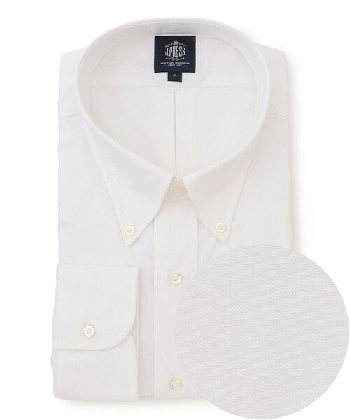 ■着心地へのこだわり~縫製ポイント~POINT1.肌が覚えるやわらかさ。襟元に、上質が宿る。一般的に形態安定を謳っているシャツは衿やカフスに接着芯を使用し皺になりづらいようケアしています。しかしその反面襟やカフスは固くなり着心地が悪くなるばかりか表地の自然な風合いも接着することで失ってしまうので見た目もチープになります。J.PRESSのプレミアムプリーツは衿、カフスに接着芯は用いていないので直接肌に触れる部分が柔らかくできており、また衿の表情などは綿の自然な風合いが生きているため上質感のあるシャツになります。