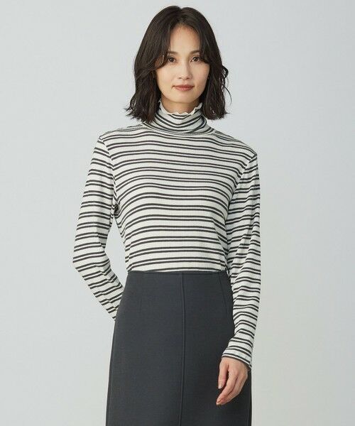 襟のアレンジで着こなし自在!使いやすいボーダーカラーでレイヤードも楽しめるタートルシアーインナー