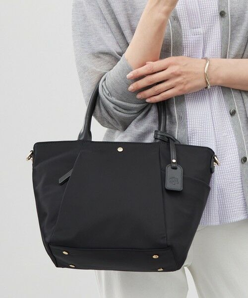 デイリーにお使い頂けるちょうど良いサイズの軽量ナイロントートバッグ。定番のナイロントートのミディアムサイズがWEB限定で登場しました。軽やかなナイロンと、持ち手に高級感のある本革を使用した、トートと斜めがけでご使用頂ける2wayタイプ。ペットボトルや長財布も入る容量で、ファスナーの開閉で安心してご使用頂けます。前と後ろ、サイドにポケットがついており、お出かけの際に小物が取り出しやすい仕様も魅力。キーチャームやパスケースをおつなぎ頂けるナス管付のベルトや、内側のポケットも充実していて、荷物の整理がしやすい機能的なバッグです。どんなコーディネートにも合わせやすいシンプルできれいめなデザインなので、お出かけから日常使いまで、幅広く活躍します。カラーは合わせやすいスタンダードなブラック(#005)、ネイビー(#075)と、シックな大人カラーの新色ブラウン(#130)、コーデのポイントになる品の良い新色スモークピンク(#012)の4色展開。