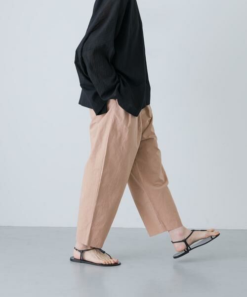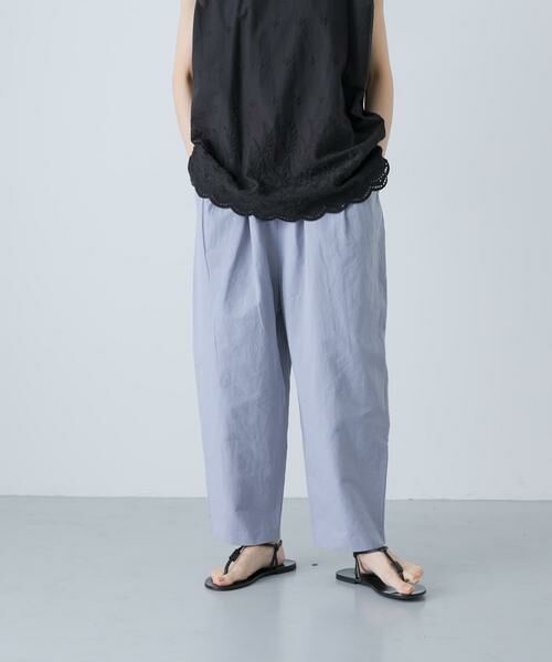 日々のコーデに頼もしくスタイリングに奥行きを与えるイージーボトム。程よい股上の深さとほんのり丸みのあるフォルムがポイントです。フロントにはタックが入っているのどこかスッキリとした佇まい。サルエルパンツのディテールを品よく着やすいデザインに落とし込みました。ウエストは総ゴムで締め付けない仕様。レギンス感覚でワンピースやチュニックのレイヤードにもおすすめ◎ロングシーズン着まわしをお楽しみください。