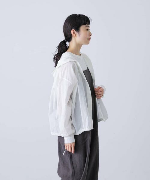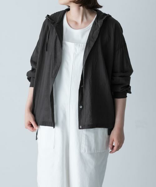 着方次第で表情を変える頼もしいアイテム。前開きなのでさっと着ることができ、ボタンの見えない比翼仕立てはミニマルな佇まい。カジュアルなフードのデザインを素材感とディテールで大人好みに仕上げました。生地はコットンにシルクがブレンドされた優しい肌触り。よく見ると素材特有の凹凸とネップがあり風合いを感じられます。裾には共生地の紐が通してあり、絞ってブラウジングするとシルエットが変わります。スタイリングに合わせてお楽しみください。