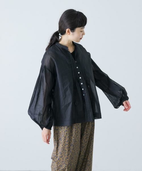 軽やかなコットンオーガンジー素材を使用したトップスをご紹介します。ピンタックやギャザー使いが存在感を高めたデザイン。袖口にはゴムが入っていて、まくった時に落ちにくい仕様なのも嬉しいポイント。薄手のタートルネックとのスタイリングもお楽しみいただけます。