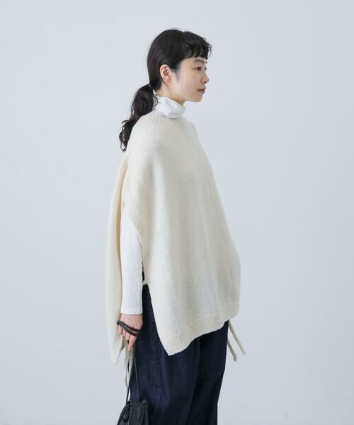 ワイドシルエットが大人の抜けた雰囲気を叶えるニットベスト。脇が開いていて紐で結ぶデザインなので、コーディネートのプラスワンにおすすめです。襟ぐりはコンパクトに仕上げ上品な印象に。カットソー・ブラウスなどと合わせたり、シャツやワンピースを重ねてもごわつきにくく着まわし力の高い1枚。シリーズで他のアイテムもご用意しているのでぜひご覧ください。