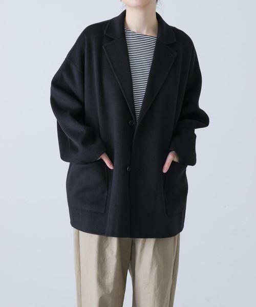 さっと羽織るだけで存在感のある着こなしに仕上がる一品。スタイリングに合わせて幅広い着こなしに馴染みます。柔らかすぎず適度にハリ感のあるウール生地を使用。高品質な生地のため非常に肌触りが良く軽くてあたたかいのが特徴です。カットソーからニットまで着用できるサイズ感なのでインナーで温度調節が可能。裏地の無い一重仕立てを採用し気軽に着られるのもポイント。パンツ・スカートはもちろんワンピースにも好相性。サロペットとの組み合わせも程よいおとなっぽさがプラスされておすすめ。抜けた雰囲気もあり、かっちりし過ぎず程よくハンサムな表情。オンオフ問わずコーディネートに大活躍の予感です。両サイドのパッチポケットは機能性がありつつアクセントに。同素材で他のアイテムもご用意しているのでぜひご覧ください。