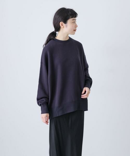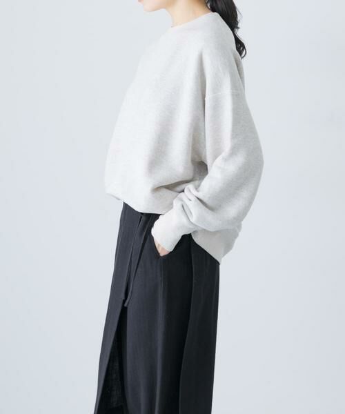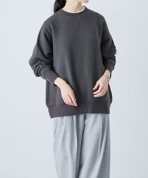 滑らかな肌触りが非常に着心地の良い1枚。ゆるっとしたボディと長めの袖が抜け感をもたらしカジュアルになりすぎないスウェットです。ベーシックなデザインですが、こなれたムードのカラーリングがどこか上品な雰囲気をまとっています。パンツ/スカートはもちろんワンピースにレイヤードするコーディネートもおすすめ。中にシャツを合わせて襟や裾からのぞかせるスタイリングも素敵ですよ。日々の着こなしに重宝し、秋から春先まで長く活躍が期待できます。同素材のシリーズアイテムもぜひご覧ください。